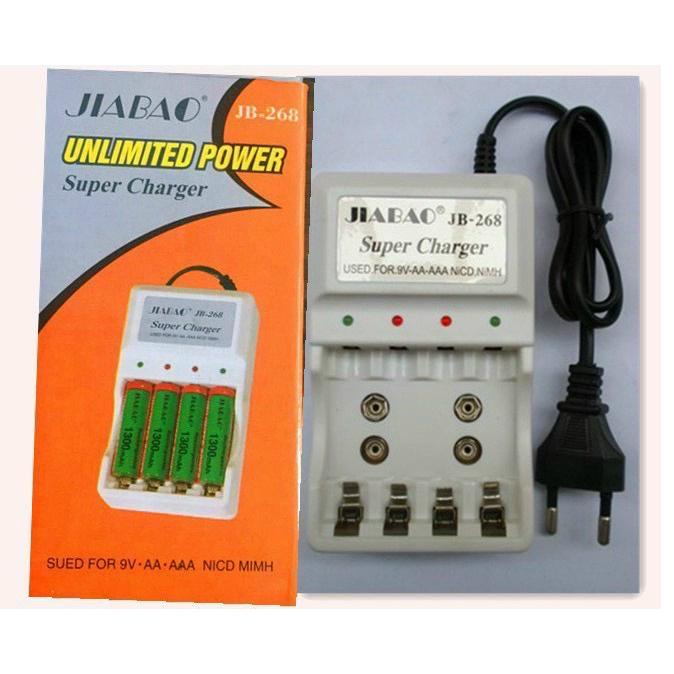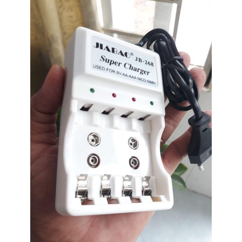 - BỘ SẠC PIN ĐA NĂNG JIABAO JB268 với thiết kế độc đáo giúp sạc nhiều loại pin và nhiều pin cùng một lúc, Bộ sạc dùng cho sạc pin AA, AAA và pin vuông 9V